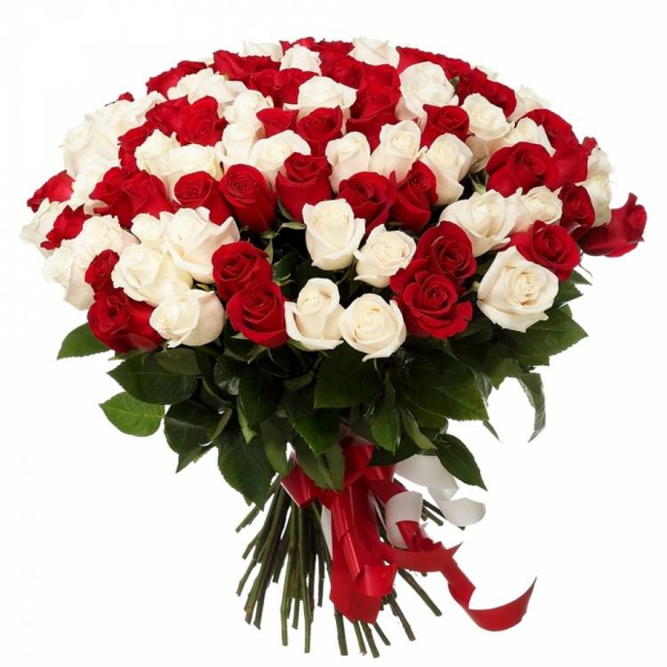 Если темные бордовые розы больше подходят для подарка дамам в солидном возрасте, то сочетание белоснежных и алых бутонов балует универсальностью. Они олицетворяют тандем нежности и всепоглощающей страсти. По отдельности красные розы служат признанием в глубоких искренних чувствах, а белые бутоны символизируют благородство и чистоту намерений мужчины. Композиция из 101 белоснежной и красной зоны станет одой женской молодости, красоты и элегантности. Такой роскошный подарок наверняка не оставит вашу девушку равнодушной и покроет густым румянцем её счастливое смущенное личико.